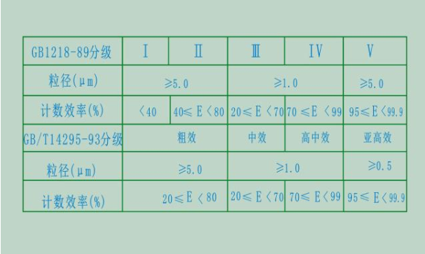 一般通風用空氣濾芯分類一大氣塵計數法表