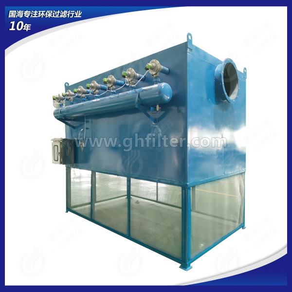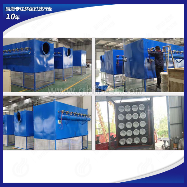 自潔過程: 含塵空氣氣經過濾后,塵埃被吸附在高效過濾筒上,由 PLC 按設定時間順序進行反吹自潔過程, 當阻損值超過 600 帕時,由 PLC 按差壓順序控制反吹自潔過程(反吹時間為 0.1-0.2 秒)。其它高效過濾筒照常工作,塵埃被反吹自潔下來。