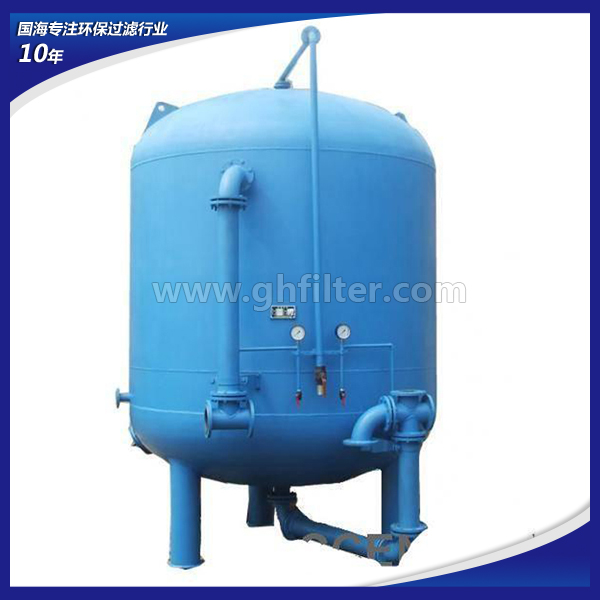 多介質過濾器是以成層狀的無煙煤、砂、細碎的石榴石或其他材料為床層,床層的頂層由較輕和較粗品級的材料組成,而較重和較細品級的材料放在床的低部。其原理為按深度過濾--水中較大的顆粒在頂層被去除,較小的顆粒在過濾器介質的較深處被去除。從而使水質達到粗過濾后的標準。設備是壓力式的,其原理是當原水自上而下通過濾料時,水中懸浮物由于吸附和機械阻流作用被濾層表面截留下來;當水流進濾層中間時,由于濾料層中的砂粒排列的更緊密,使水中微粒有更多的機會與砂粒碰撞,于是水中凝絮物、懸浮物和砂粒表面相互粘附,水中雜質截留在濾料層中,從而得到澄清的水質