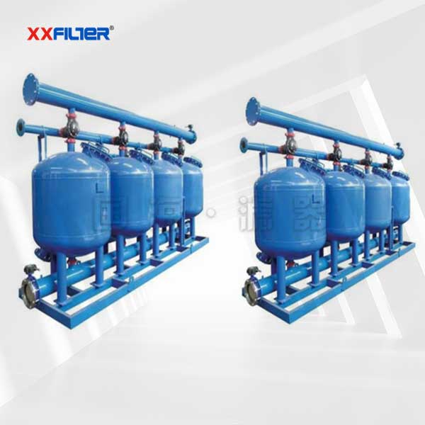 3、過濾水量大,過濾效果好,過濾流速快,正常濾速可在40m/h左右,根據水質可達60m/h;過濾器反洗采用產品水,且不必設增壓泵和反洗泵;反洗歷時2-3min,反洗水量<3m3。過濾精度高,雜質過濾精度可在0.10mm以下,出水濁度可小于0.5NTU。過濾系統由標準單元砂缸組成,過濾流量可從30.6立方米/小時增至2500立方米/小時。